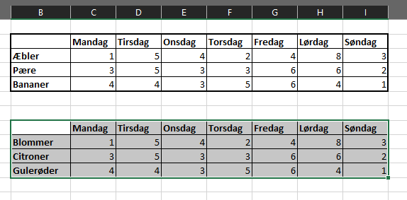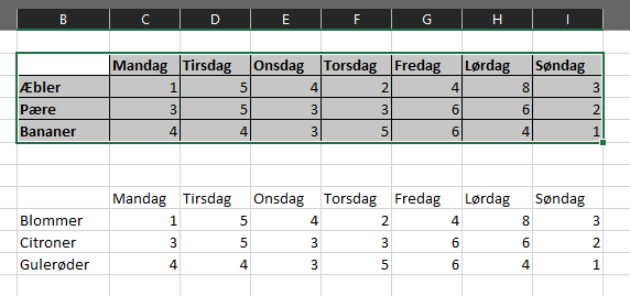 - Marker de celler som skal have samme formatering. Nu kopieres formateringen ind.